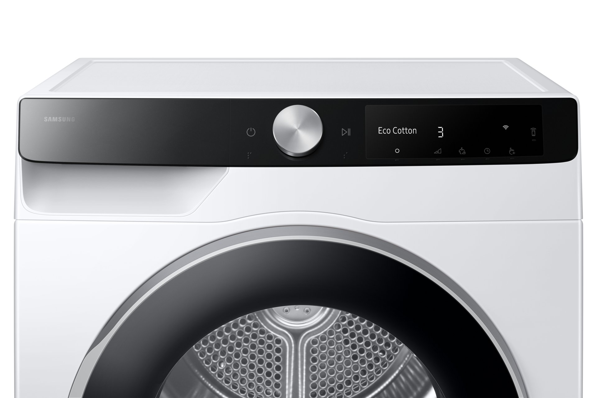 SamsungSamsung DV90DG6845LK, Vrijstaand, Voorbelading, Warmtepomp, Wit, Draaiknop, Touch, Rechts
