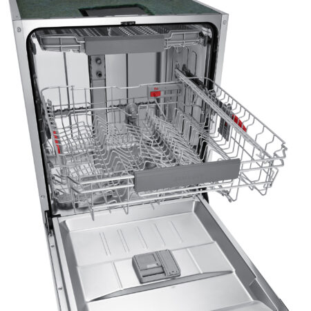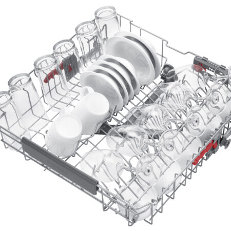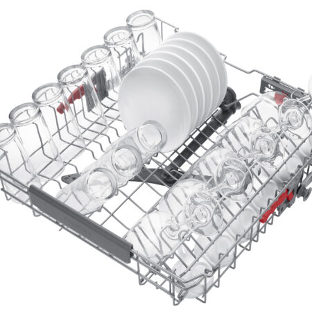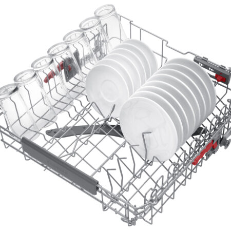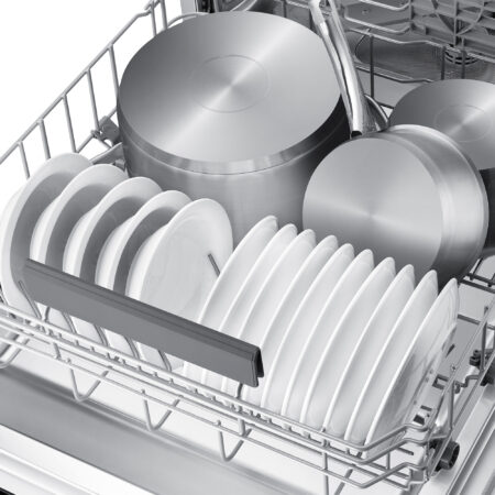 Een mand vol vaat veilig verwijderen is nu gemakkelijker dan ooit. Het Soft Railing-systeem maakt gebruik van kogelladegeleiders waardoor er minimale wrijving is en de rekken soepel in- en uit de vaatwasser kunnen worden geschoven, zelfs als ze zwaar belaad zijn met pannen. De kans dat er items uit de manden worden minder heen en weer geschud, waardoor de kans kleiner is dat ze eruit vallen.