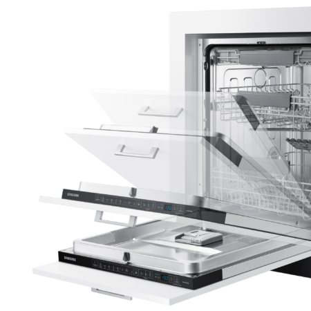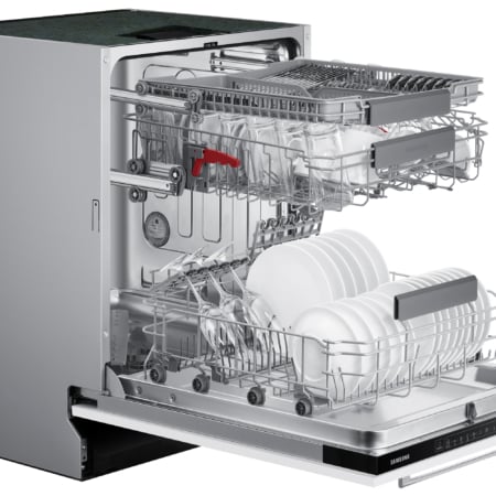 Samsung DW60A8060IB. Apparaatplaatsing: Volledig ingebouwd, Productafmeting: Volledige grootte (60 cm), Deurkleur: Zwart. Aantal couverts: 14 couverts, Geluidsemissieklasse: B, Geluidsniveau: 43 dB. Energie-efficiëntieklasse: B, Waterconsumptie per cyclus: 8,5 l, Energieverbruik per 100 cycli: 64 kWu. Breedte: 598 mm, Diepte: 550 mm, Hoogte: 815 mm. Land van herkomst: China