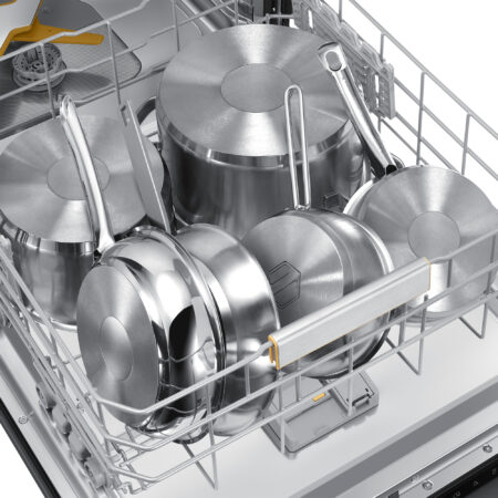 Volg en verlaag het energieverbruik van de vaatwasser. Met de AI Energy-modus[12] kun je het energieverbruik van de vaatwasser volgen en terugdringen. Als je boven het geschatte maandbedrag van je energierekening dreigt uit te komen, kun je de AI Energy-modus activeren en bespaar je tot 23% energie met het ‘Pots &Pans’-programma[13].