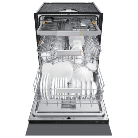 Stel de manier waarop je de vaatwasser gebruikt in op jouw levensstijl. Met de SmartThings App[10] kun je de machine op afstand op je smartphone in de gaten houden en bedienen en kun je speciale programma’s downloaden. In de app vind je ook suggesties voor programma’s afgestemd op jouw manier van koken voor het besparen op energie en vaatwasmiddel en tips bij foutmeldingen.