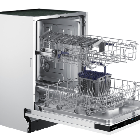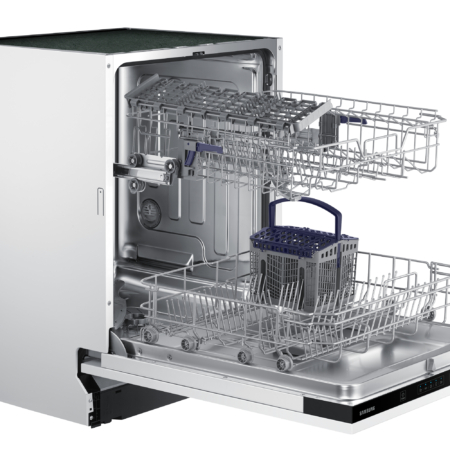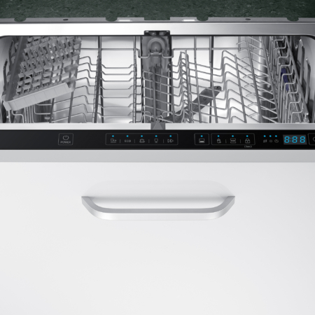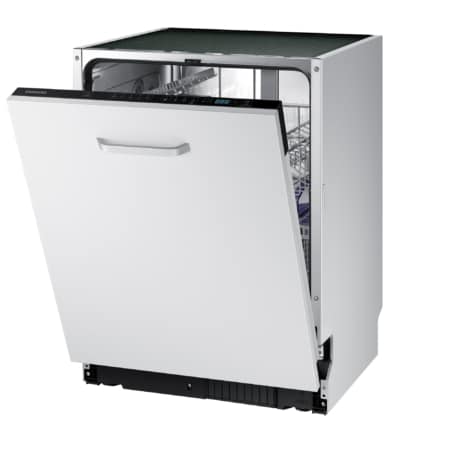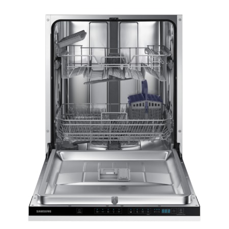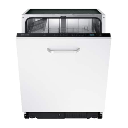 Samsung DW60M5050BB. Apparaatplaatsing: Semi-ingebouwd, Productafmeting: Volledige grootte (60 cm), Deurkleur: Zwart. Aantal couverts: 13 couverts, Geluidsniveau: 48 dB, Afwasprogramma’s: Eco, Intensief, Normaal, Snel. Backlight-kleur: Blauw. Energie-efficiëntieklasse: F, Waterconsumptie per cyclus: 12 l, Energieverbruik per 100 cycli: 104 kWu. Breedte: 598 mm, Diepte: 550 mm, Hoogte: 815 mm