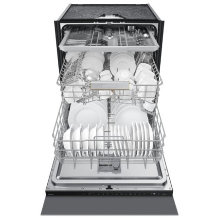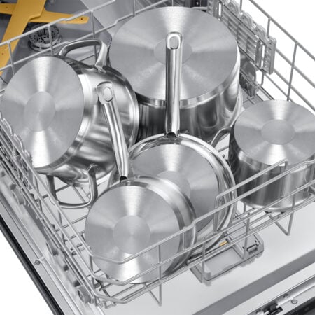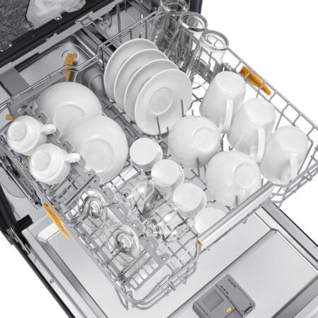 Met de Auto Open Door-functie krijg je keer op keer een stralend schone vaat. Wanneer de vaatwasser klaar is met spoelen en drogen, opent de deur automatisch 10 cm zodat stoom kan ontsnappen. Zo krijg je betere droogresultaten vergeleken met bij conventionele methoden[4] , zeker bij kleine spullen.
