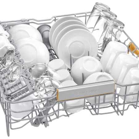 Verminder het lawaai in je huis. De vaatwasser draait zijn programma’s efficiënt en met weinig geluid dankzij de Inverter-motor die wrijving vermindert. Je kunt ook kiezen voor het Extra Silence-programma dat iets langer duurt, maar 2 decibel minder geluid maakt dan het ECO-programma[3]. Zo is het in je huis muisstil.