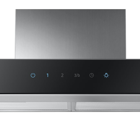 Samsung NK24M5070BS. Maximale afzuigcapaciteit: 668 m³/uur, Afzuigmethode: Afvoerend/recirculerend, Fluid dynamic efficiency class: B. Soort: Muurmontage, Kleur van het product: Zwart, Roestvrijstaal, Soort bediening: Touch. Soort vetfilter: Aluminium. Vermogen lamp: 2,5 W, Aantal lampen: 2 gloeilamp(en), Type lamp: LED. Energie-efficiëntieklasse: B, Jaarlijks energieverbruik: 80 kWu