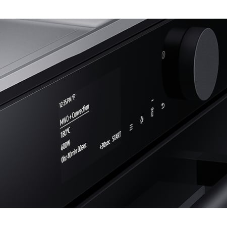 Samsung NQ50T8539BK. Grootte oven: Middelmaat, Soort oven: Elektrische oven, Totale binnen capaciteit (ovens): 50 l. Apparaatplaatsing: Ingebouwd, Kleur van het product: Zwart, Soort bediening: Draaiknop, Touch. Soort klok: Elektronisch, Type timer: Digitaal, Bedieningsapps ondersteund: Samsung SmartThings. Aantal lampen: 1 lampen, Soort lamp: Halogeen, Verlichtingslocatie: Achter links. Installatie compartiment breedte: 56 cm, Installatie compartiment diepte: 54,9 cm, Installatie compartiment hoogte: 44,6 cm