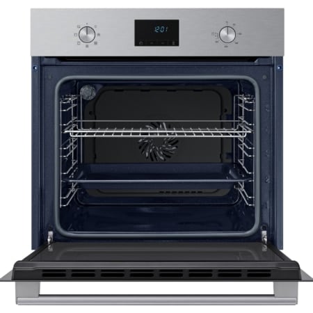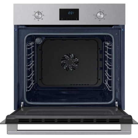 Samsung NV68A1140BS. Grootte oven: Middelmaat, Soort oven: Elektrische oven, Totale binnen capaciteit (ovens): 68 l. Apparaatplaatsing: Ingebouwd, Kleur van het product: Zwart, Gesatineerd staal, Soort bediening: Draaiknop. Soort klok: Elektronisch, Type timer: Digitaal. Energie-efficiëntieklasse: A, Energieverbruik (conventioneel): 0,99 kWu, Energieverbruik (geforceerde convectie): 0,8 kWu. Soort lamp: Halogeen, Verlichtingslocatie: Achter, Vermogen lamp: 25 W