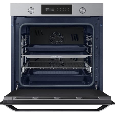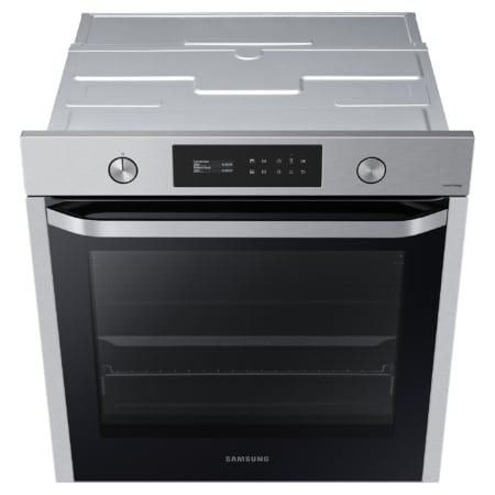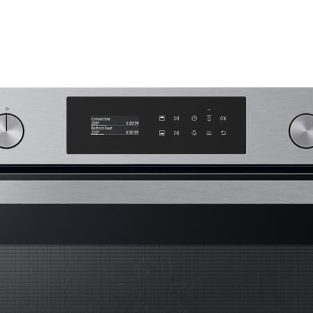 Samsung NV75A6549RS. Grootte oven: Middelmaat, Soort oven: Elektrische oven, Totale binnen capaciteit (ovens): 75 l. Apparaatplaatsing: Ingebouwd, Kleur van het product: Roestvrijstaal, Soort bediening: Draaiknop. Soort klok: Elektronisch, Type timer: Digitaal, Timermodi: Einde kooktijd. Energie-efficiëntieklasse: A+, Energieverbruik (conventioneel): 1,05 kWu, Energieverbruik (geforceerde convectie): 0,71 kWu. Soort lamp: Halogeen, Verlichtingslocatie: Zijkant, Boven, Vermogen lamp: 25 W