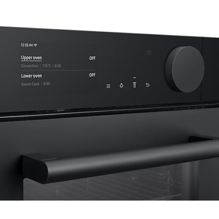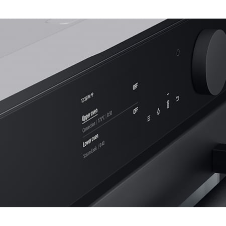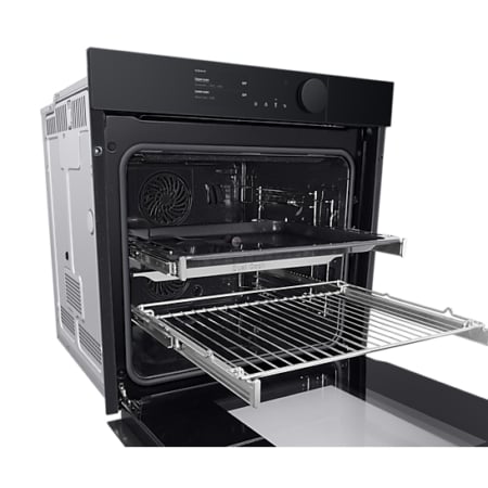 Samsung NV75T9979CD. Grootte oven: Middelmaat, Soort oven: Elektrische oven, Totale binnen capaciteit (ovens): 75 l. Apparaatplaatsing: Ingebouwd, Kleur van het product: Zwart, Soort bediening: Draaiknop, Touch. Soort klok: Elektronisch, Type timer: Digitaal, Bedieningsapps ondersteund: Samsung SmartThings. Energie-efficiëntieklasse: A+, Energieverbruik (conventioneel): 1,05 kWu, Energieverbruik (geforceerde convectie): 0,71 kWu. Aantal lampen: 2 lampen, Soort lamp: Halogeen, Verlichtingslocatie: Zijkant