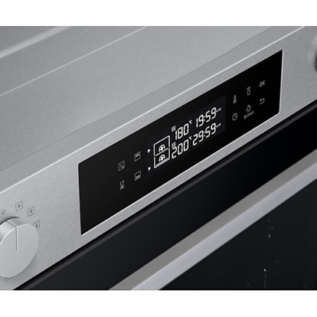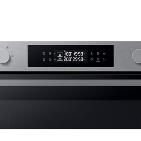 Samsung NV7B44205AS/U4. Grootte oven: Groot, Soort oven: Elektrische oven, Totale binnen capaciteit (ovens): 76 l. Apparaatplaatsing: Ingebouwd, Kleur van het product: Roestvrijstaal, Soort bediening: Draaiknop, Touch. Soort klok: Elektronisch, Type timer: Digitaal, Timermodi: Bereidingstijd, Einde kooktijd. Energie-efficiëntieklasse: A+, Energieverbruik (conventioneel): 1,05 kWu, Energieverbruik (geforceerde convectie): 0,71 kWu. Aantal lampen: 2 lampen, Soort lamp: Halogeen, Verlichtingslocatie: Zijkant, Boven