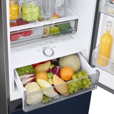 Samsung RB38A7B6D34. Klimaatklasse: SN-T, Geluidsniveau: 35 dB. No Frost (koelkast), Aantal planken koelkast: 4, Aantal groente lades: 2. Vriescapaciteit: 8 kg/24u, No Frost (vriezer). Vers zone compartiment. Energie-efficiëntieklasse: D, Jaarlijks energieverbruik: 211 kWu. Kleur van het product: blauw