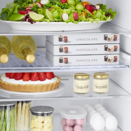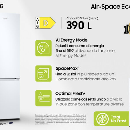 Samsung RB38C605DWW. Deurscharnieren: Rechts. Klimaatklasse: SN-T, Geluidsniveau: 35 dB. No Frost (koelkast), Koelkast binnenverlichting, Aantal planken koelkast: 4, Aantal groente lades: 2. Vriescapaciteit: 8 kg/24u, No Frost (vriezer). Vers zone compartiment. Energie-efficiëntieklasse: D, Jaarlijks energieverbruik: 211 kWu. Kleur van het product: Wit