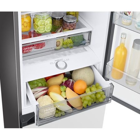 Samsung RB38C7B5C12/EU. Deurscharnieren: Rechts. Klimaatklasse: SN-T, Geluidsniveau: 35 dB. Nettocapaciteit koelkast: 276 l, No Frost (koelkast), Koelkast binnenverlichting, Aantal planken koelkast: 4, Aantal groente lades: 2. Nettocapaciteit vriezer: 114 l, Vriescapaciteit: 8 kg/24u, No Frost (vriezer). Energie-efficiëntieklasse: C, Jaarlijks energieverbruik: 169 kWu. Kleur van het product: Wit