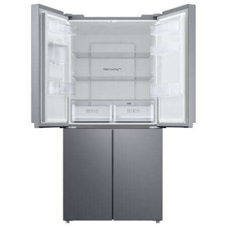 Samsung RF48A401EM9, Vrijstaand, Frans deur, Roestvrijstaal, Op de deur, Gehard glas, SN-T