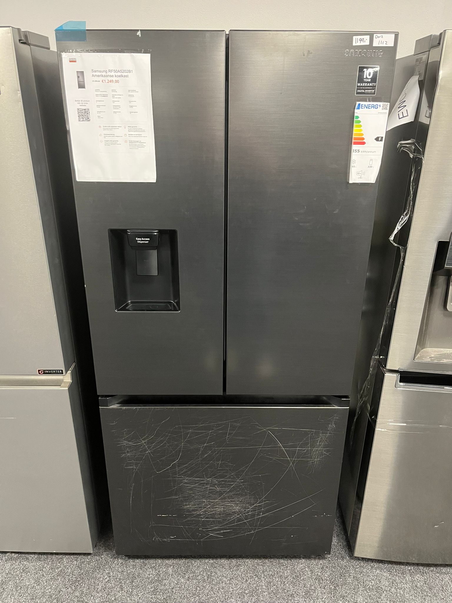 Samsung RF50A5202B1. Apparaatplaatsing: Vrijstaand, Productontwerp: Frans deur, Kleur van het product: Zwart. Totale nettocapaciteit: 495 l, Klimaatklasse: T, Geluidsemissieklasse: C. Nettocapaciteit koelkast: 330 l. Nettocapaciteit vriezer: 165 l, Vriezer positie: Onder, Vriescapaciteit: 6 kg/24u. Energie-efficiëntieklasse: F, Jaarlijks energieverbruik: 355 kWu, Energie-efficiëntieschaal: A tot G