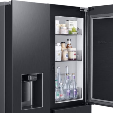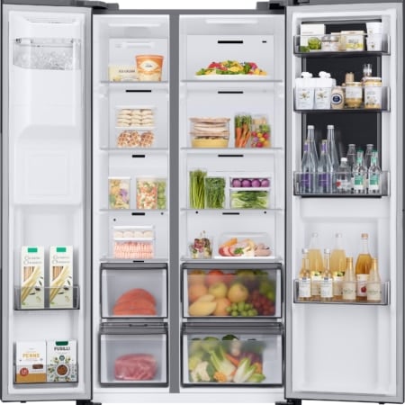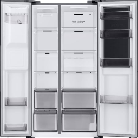 De Samsung RH68B8821B1/EF is een vrijstaande Amerikaanse koelkast die met zijn Food Showcase snelle toegang biedt tot jouw favoriete drankje. Hierdoor hoeft de koelkastdeur niet meer te openen en bespaar je energie. De koelkast wordt door de SpaceMax-technologie zeer efficiënt geïsoleerd, doordat de wanden dunner zijn zonder dat het energieverbruik toeneemt. Hierdoor biedt deze 627 liter koelkast genoeg ruimte om jouw wekelijkse boodschappen in te bewaren. Vooral geschikt voor grotere huishoudens. De Twin Cooling Plus-technologie reguleert de temperatuur en vochtigheidsgraad in de koelkast en vriezer optimaal via twee gescheiden koelsystemen waardoor etenswaren tot 2 weken langer vers blijven. Verder zorgt het Precise Chef Cooling-systeem voor gelijkmatige koeling door de gehele koelkast en stabiliseert het temperatuurschommelingen. Dit waarborgt niet alleen de versheid, maar ook de smaak en textuur van etenswaren voor langere tijd.