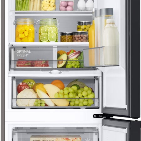 Samsung RL38A7B5BS9/EG. Totale nettocapaciteit: 387 l. Deurscharnieren: Rechts. Klimaatklasse: ST-T, Geluidsniveau: 35 dB. Nettocapaciteit koelkast: 273 l, No Frost (koelkast), Multi-luchtwegsysteem (koelkast), Koelkast binnenverlichting, Aantal planken koelkast: 5. Nettocapaciteit vriezer: 114 l, Vriescapaciteit: 8 kg/24u, No Frost (vriezer). Energie-efficiëntieklasse: B, Jaarlijks energieverbruik: 134 kWu. Kleur van het product: Roestvrijstaal