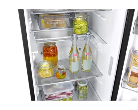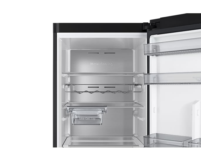 Samsung RR39C7EC5B1. Nettocapaciteit koelkast: 387 l, No Frost system, Klimaatklasse: SN-ST, Geluidsniveau: 39 dB. Aantal planken koelkast: 5, Aantal groente lades: 2. Soort lamp: LED. Jaarlijks energieverbruik: 120 kWu, Energie-efficiëntieklasse: E. Gewicht: 69 kg. Kleur van het product: Grafiet