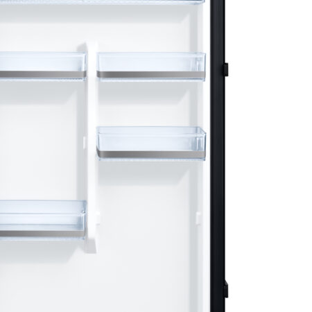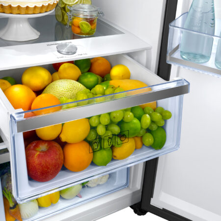 Samsung RR39M7565B1. Nettocapaciteit koelkast: 387 l, No Frost system, Klimaatklasse: SN-T, Geluidsniveau: 39 dB. Aantal planken koelkast: 6, Aantal groente lades: 2. Soort lamp: LED. Deurscharnieren: Rechts. Jaarlijks energieverbruik: 120 kWu, Energie-efficiëntieklasse: E. Gewicht: 74 kg. Kleur van het product: Zwart