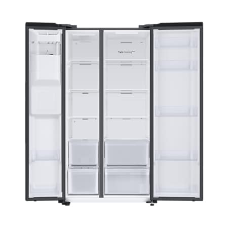 De Samsung RS67A8811B1 is een Amerikaanse koelkast en is van alle gemakken voorzien. De koelruimte heeft een inhoud van 409 liter en is met 4 tempered glass platen, 5 deurvakken, 2 groente- en fruitladen vrij in te delen. Het vriesvak, 225 liter, komt met 4 planken, 2 deurvakken en 2 lades . Ook de ijsmaker bevindt zich in de vriesruimte.
