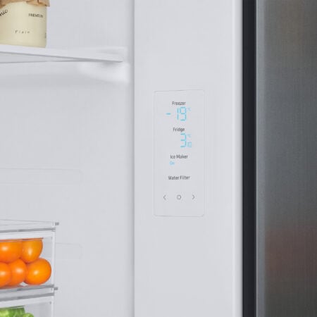 Smart Conversion geeft je meer flexibiliteit met 5 verschillende instellingen. Natuurlijk kan je de Amerikaanse koelkast in standaard modus gebruiken: links vriezer en rechts koelkast. Meer behoefte aan koelruimte? Zet het linker gedeelte om van vriezen naar koelen en je hebt een méga koelkast. Op vakantie? Zet het koelgedeelte uit en gebruik alleen de vriezer. Vriezer schoonmaken? Zet het vriesgedeelte makkelijk uit voor de grote schoonmaak. Even niet zoveel ruimte nodig? Gebruik alleen het vriesgedeelte als koelkast. Kortom, de RS8000A lijn maakt het leven een stuk gemakkelijker door de 5 verschillende instellingen. Er is er altijd wel één die past bij jouw huishouden.