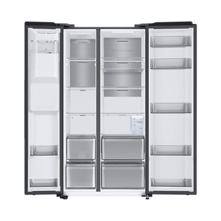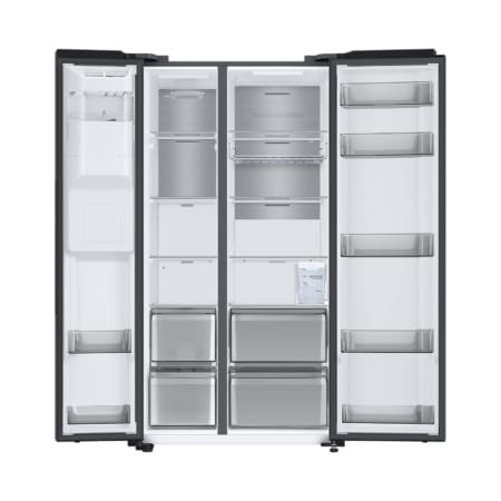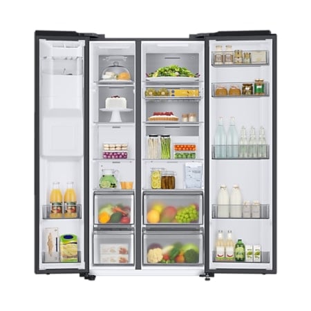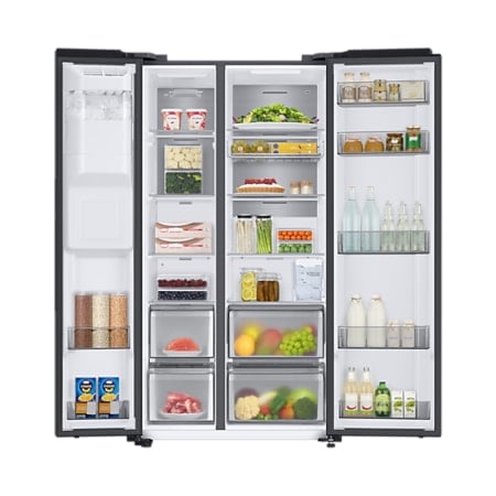 Samsung RS68A8540B1/EF. Apparaatplaatsing: Vrijstaand, Productontwerp: Amerikaanse deur, Kleur van het product: Zwart. Totale nettocapaciteit: 634 l, Klimaatklasse: SN-T, Geluidsemissieklasse: C. Nettocapaciteit koelkast: 409 l. Nettocapaciteit vriezer: 225 l, Vriezer positie: Ernaast, Vriescapaciteit: 15 kg/24u. Energie-efficiëntieklasse: F, Jaarlijks energieverbruik: 395 kWu, Energie-efficiëntieschaal: A tot G