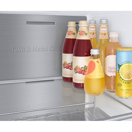 Houd voedsel twee keer zo lang vers. * Twin Cooling Plus ™ optimaliseert de temperatuur en vochtigheid in de koelkast en vriezer dankzij de onafhankelijke koelzones. Hierdoor blijven de producten vers en smakelijk en dringen hun aroma’s niet in elkaar door.