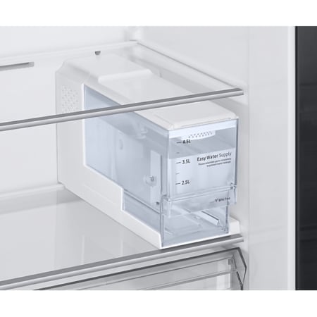 Installeer de koelkast waar u maar wilt, zonder tijdrovende sanitaire aansluitingen. De machine is uitgerust met een grote BPA-vrije * water- en ijsdispensercontainer. Hierdoor is de koelbox vrijwel overal te plaatsen. U hoeft er ook niet aan te denken om het waterfilter regelmatig te vervangen, wat u zowel tijd als geld bespaart.