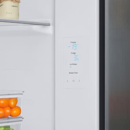 Samsung RS68A8840S9. Apparaatplaatsing: Vrijstaand, Productontwerp: Amerikaanse deur, Kleur van het product: Zilver. Totale nettocapaciteit: 634 l, Klimaatklasse: SN-T, Geluidsemissieklasse: C. Nettocapaciteit koelkast: 409 l. Nettocapaciteit vriezer: 225 l, Vriezer positie: Ernaast, Vriescapaciteit: 15 kg/24u. Energie-efficiëntieklasse: F, Jaarlijks energieverbruik: 395 kWu, Energie-efficiëntieschaal: A tot G