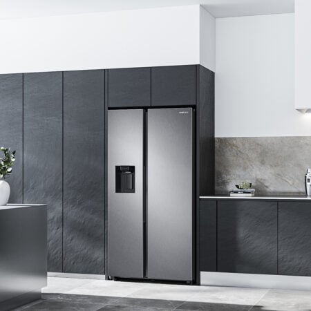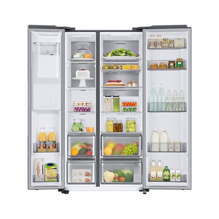 Samsung RS68A884CSL. Apparaatplaatsing: Vrijstaand, Productontwerp: Amerikaanse deur, Kleur van het product: Roestvrijstaal. Klimaatklasse: SN-T, Geluidsemissieklasse: B, Geluidsniveau: 35 dB. Brutocapaciteit koelkast: 409 l, Soort lamp: LED. Vriezer positie: Ernaast, Vriescapaciteit: 15 kg/24u, Bewaartijd bij stroomuitval: 7 uur. Energie-efficiëntieklasse: C, Jaarlijks energieverbruik: 225 kWu, Energie-efficiëntieschaal: A tot G