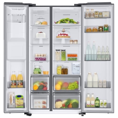 SamsungSamsung RS68CG852ES9, Vrijstaand, Amerikaanse deur, Roestvrijstaal, LED, Binnenin, Gehard glas