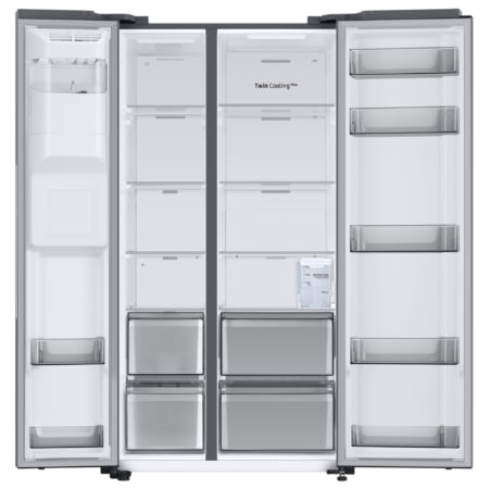 Samsung RS68CG852ES9, Vrijstaand, Amerikaanse deur, Roestvrijstaal, LED, Binnenin, Gehard glas