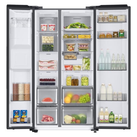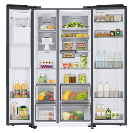 Smart Conversion geeft je meer flexibiliteit met 5 verschillende instellingen. Natuurlijk kan je de Amerikaanse koelkast in standaard modus gebruiken: links vriezer en rechts koelkast. Meer behoefte aan koelruimte? Zet het linker gedeelte om van vriezen naar koelen en je hebt een méga koelkast. Op vakantie? Zet het koelgedeelte uit en gebruik alleen de vriezer. Vriezer schoonmaken? Zet het vriesgedeelte makkelijk uit voor de grote schoonmaak. Even niet zoveel ruimte nodig? Gebruik alleen het vriesgedeelte als koelkast. Kortom, de RS8000A lijn maakt het leven een stuk gemakkelijker door de 5 verschillende instellingen. Er is er altijd wel één die past bij jouw huishouden.