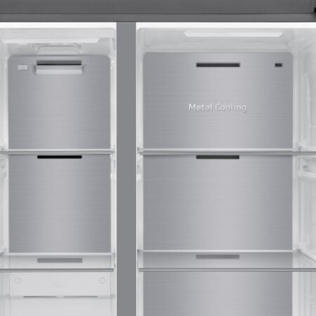 Zorg dat de binnenkant van de koelkast de juiste temperatuur heeft, zodat etenswaren vers blijven, ook als je de koelkastdeur vaak opent. Het Metal Cooling-systeem is mooi én functioneel: de afvoer op de achterwand zorgt ervoor dat de kou in de lucht behouden blijft, helpt om warmteverlies te herstellen en is gemakkelijk te reinigen.