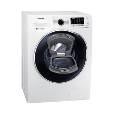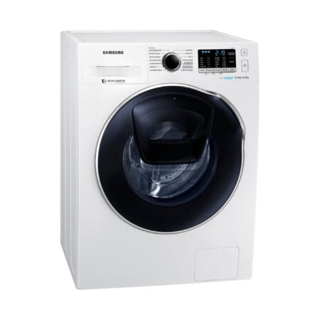 Samsung WD80K5B10OW, Voorbelading, Vrijstaand, Wit, Links, Knoppen, Draaiknop, LED