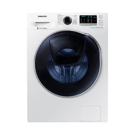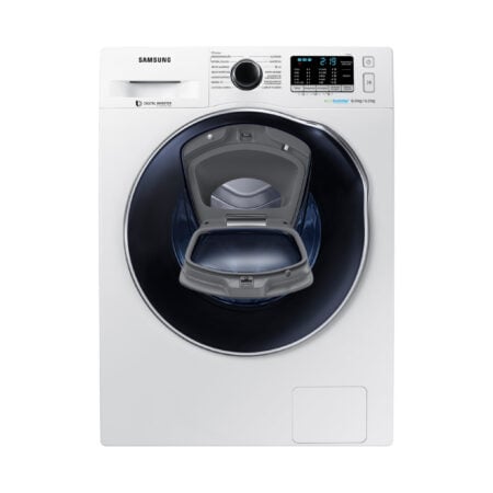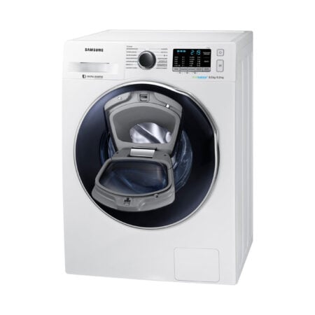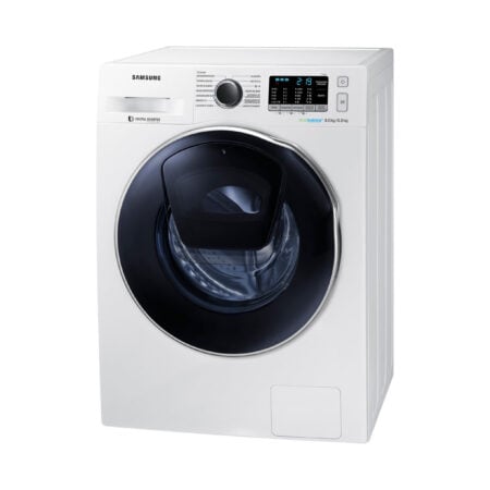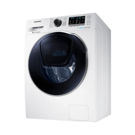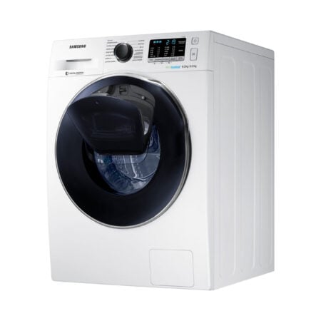 Samsung WD80K5B10OX. Type lader: Voorbelading, Apparaatplaatsing: Vrijstaand, Kleur van het product: Wit. Droogcapciteit: 6 kg, Maximale centrifugesnelheid: 1400 RPM, Centrifuge-droger klasse: A. Water verbruik wassen: 48 l, Waterverbruik wassen & drogen: 88 l, Energieverbruik wassen: 1,04 kWu. Diepte: 600 mm, Breedte: 600 mm, Hoogte: 850 mm. Wasklasse: A, Jaarlijkse energieverbruik wassen: 208 kWu, Jaarlijks waterverbruik wassen: 9600 l