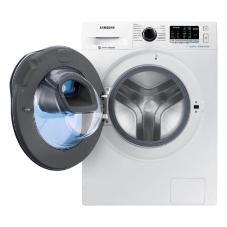 SamsungSamsung WD80K5B10OW, Voorbelading, Vrijstaand, Wit, Links, Knoppen, Draaiknop, LED