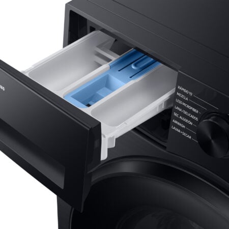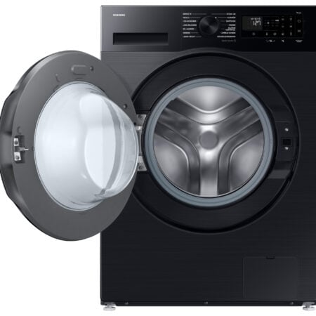 Samsung WD90DG5B15BB, Voorbelading, Vrijstaand, Zwart, Links, Zwart, Zwart