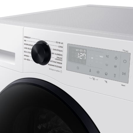 Samsung WD90DG5B15BH, Voorbelading, Vrijstaand, Wit, Links, Zwart, Zwart