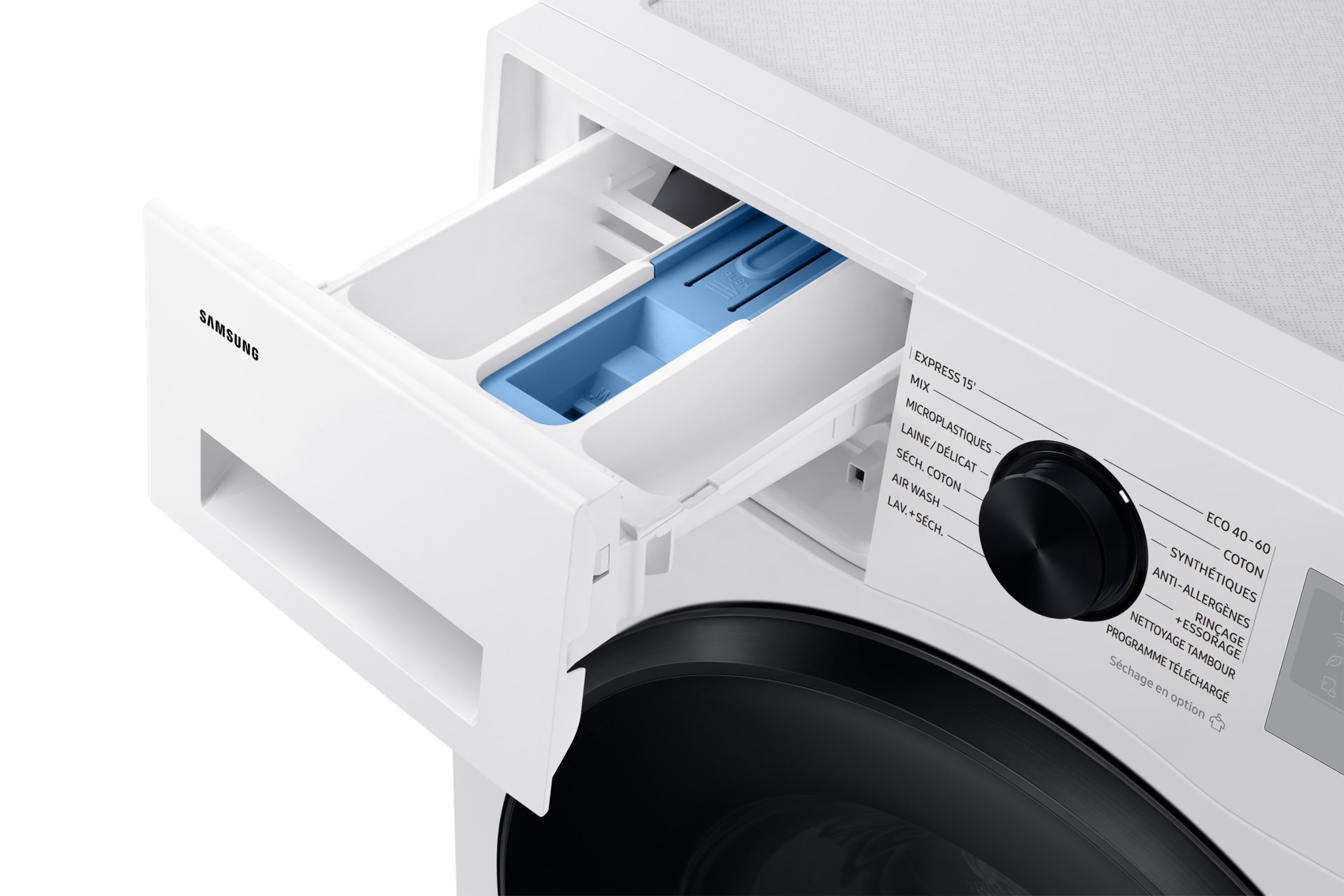 Samsung WD90DG5B15BH. Type lader: Voorbelading, Apparaatplaatsing: Vrijstaand, Kleur van het product: Wit. Droogcapciteit: 6 kg, Maximale centrifugesnelheid: 1400 RPM, Centrifuge-droger klasse: B. Energie-efficiëntieklasse (wassen): A, Energie-efficiëntieklasse (wassen en drogen): D, Water verbruik wassen: 50 l. Samsung-technologieën (kledingzorg): SmartThings, ecobubble™. Diepte: 600 mm, Breedte: 600 mm, Hoogte: 850 mm