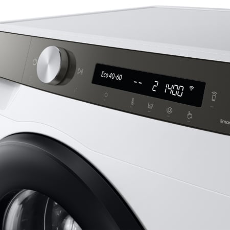 Samsung WW90T534DAT. Type lader: Voorbelading. Nominale capaciteit: 9 kg, Centrifuge-droger klasse: B, Geluidsniveau bij centrifugeren: 74 dB, Geluidsniveau (wassen): 53 dB, Maximale centrifugesnelheid: 1400 RPM. Kleur van het product: Wit. Breedte: 600 mm, Diepte: 550 mm, Hoogte: 850 mm. Energie-efficiëntieklasse: A