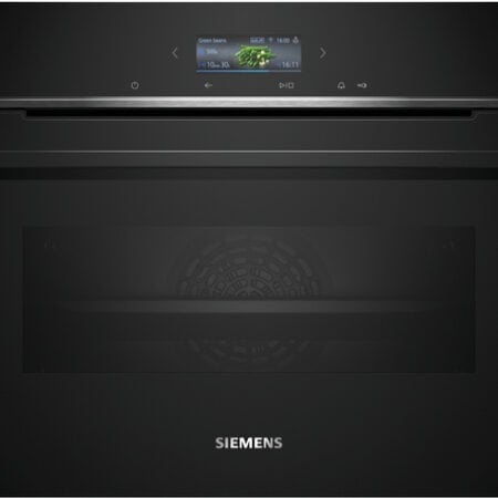 Siemens CB734G1B1. Grootte oven: Middelmaat, Soort oven: Elektrische oven, Totale binnen capaciteit (ovens): 47 l. Apparaatplaatsing: Ingebouwd, Kleur van het product: Zwart, Soort bediening: Touch. Soort klok: Elektronisch. Energieverbruik (conventioneel): 0,73 kWu, Energieverbruik (geforceerde convectie): 0,61 kWu, Energie-efficiëntieschaal: A+++ tot D. Aantal lampen: 1 lampen, Soort lamp: Halogeen