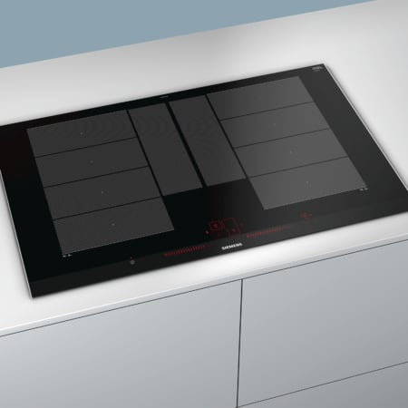 Siemens EX875LYE3E. Kleur van het product: Zwart, Roestvrijstaal, Apparaatplaatsing: Ingebouwd, Type kookplaat: Inductiekookplaat zones. Soort bediening: Touch. Aangesloten lading (elektrisch): 7400 W, AC-ingangsfrequentie: 50 – 60 Hz. Breedte: 812 mm, Diepte: 520 mm, Hoogte: 51 mm