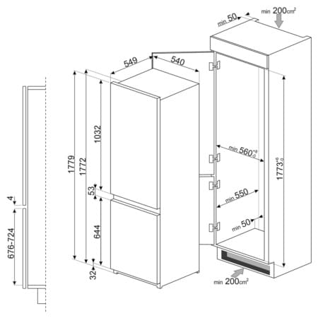 Smeg C4173N1F koel-vriescombinatie Ingebouwd 254 l F Wit