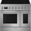 Smeg Master CUISINIERE CPF92IMX. Type product: Vrijstaand fornuis, Kleur van het product: Roestvrijstaal, Soort bediening: Knoppen, Draaiknop, Touch. Type kookplaat: Inductiekookplaat zones, Aantal branders/kookzones: 5 zone(s). Grootte oven: Middelmaat, Voedingsbron oven: Electrisch, Netto capaciteit oven: 70 l. Oven 2 afmetingen: Klein, Oven 2 voedingsbron: Electrisch, Oven 2 positie: Rechtsonder. Energie-efficiëntieklasse: A, Energieverbruik (conventioneel): 3,97 kWu