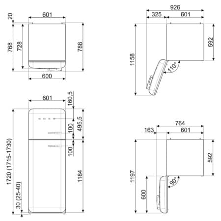 Smeg FAB30LOR5. Totale nettocapaciteit: 294 l. Deurscharnieren: Links. Klimaatklasse: ST-T, Geluidsniveau: 37 dB. Nettocapaciteit koelkast: 222 l, Koelkast binnenverlichting, Aantal planken koelkast: 2, Aantal groente lades: 1. Nettocapaciteit vriezer: 72 l, Vriescapaciteit: 4 kg/24u. Energie-efficiëntieklasse: D, Jaarlijks energieverbruik: 156 kWu. Kleur van het product: Oranje