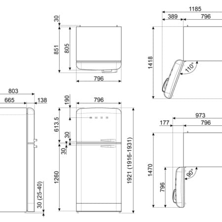 Smeg FAB50LCR5. Totale nettocapaciteit: 523,9 l. Deurscharnieren: Links, Type beeldscherm: LED. Klimaatklasse: N-T, Geluidsniveau: 41 dB. Nettocapaciteit koelkast: 351 l, No Frost (koelkast), Multi-luchtwegsysteem (koelkast), Koelkast binnenverlichting. Nettocapaciteit vriezer: 123,8 l, Vriescapaciteit: 8 kg/24u, No Frost (vriezer). Vers zone compartiment. Energie-efficiëntieklasse: E, Jaarlijks energieverbruik: 265 kWu