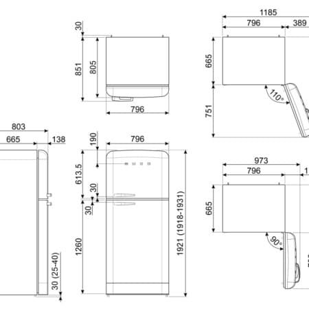 Smeg FAB50RCR5. Totale nettocapaciteit: 523,9 l. Deurscharnieren: Rechts, Type beeldscherm: LED. Klimaatklasse: N-T, Geluidsniveau: 41 dB. Nettocapaciteit koelkast: 351 l, No Frost (koelkast), Multi-luchtwegsysteem (koelkast), Koelkast binnenverlichting. Nettocapaciteit vriezer: 123,8 l, Vriescapaciteit: 8 kg/24u, No Frost (vriezer). Vers zone compartiment. Energie-efficiëntieklasse: E, Jaarlijks energieverbruik: 265 kWu