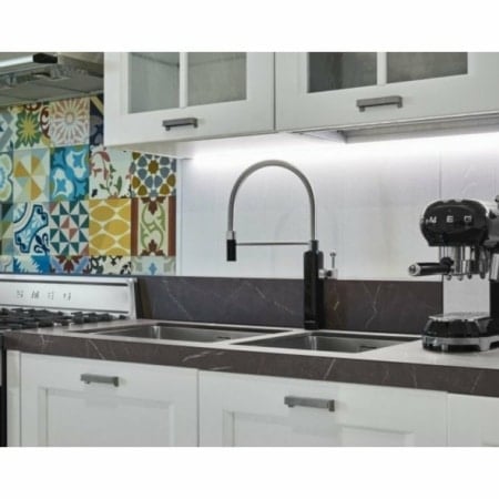 De Smeg MDF50BL is een design keukenkraan uitgevoerd in de kleur chroom en voorzien van zwarte details. Deze details zijn uitgevoerd in de kenmerkende retro jaren 50 stijl waar veel producten van Smeg in uitgevoerd zijn.