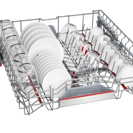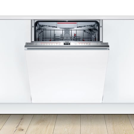Bosch Serie 6 SMV6ZCX42E. Apparaatplaatsing: Volledig ingebouwd, Productafmeting: Volledige grootte (60 cm), Deurkleur: Wit. Aantal couverts: 14 couverts, Geluidsemissieklasse: B, Geluidsniveau: 44 dB. Voetenverstelling: 6 cm, Bedieningsapps ondersteund: Bosch Home Connect. Energie-efficiëntieklasse: C, Waterconsumptie per cyclus: 9,5 l, Energieverbruik per 100 cycli: 75 kWu. Breedte: 598 mm, Diepte: 550 mm, Hoogte: 815 mm